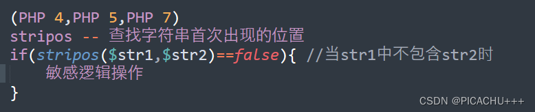 这也是一种经常能见到的写法,当str1在str2开头时,函数的返回值是0,而0 == false是成立的,这就会造成开发者逻辑之蛙的结果。