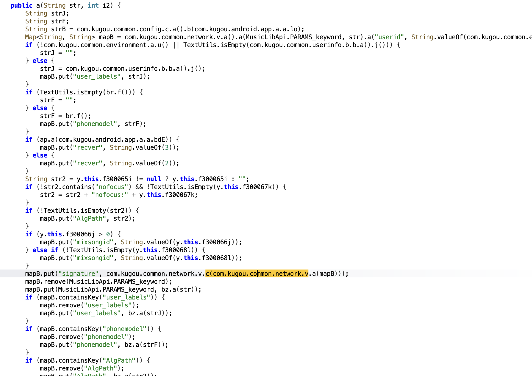根据hook到的日志,找到sign是在