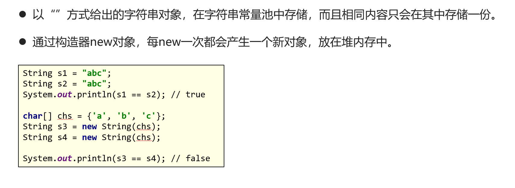 - 以“”方式给出的字符串对象,在字符串常量池中存储。