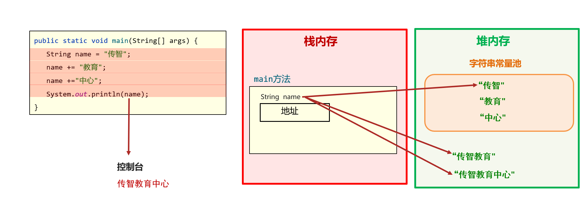 - String变量每次的修改其实都是产生并指向了新的字符串对象。