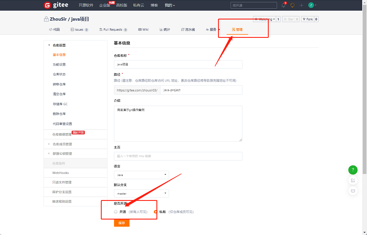 4. 设置为开源仓库如下,