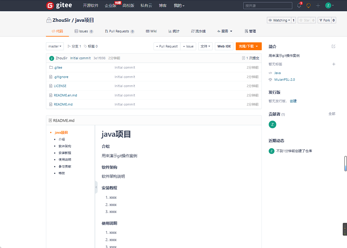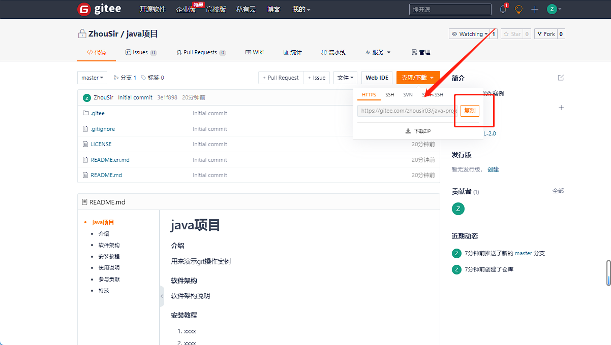 创建完成得到的远程仓库显示