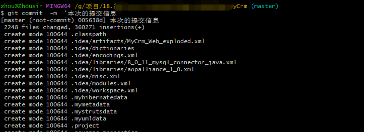 5.将暂存区的文件提交至自己仓库中:git commit -m '本次的提交信息'