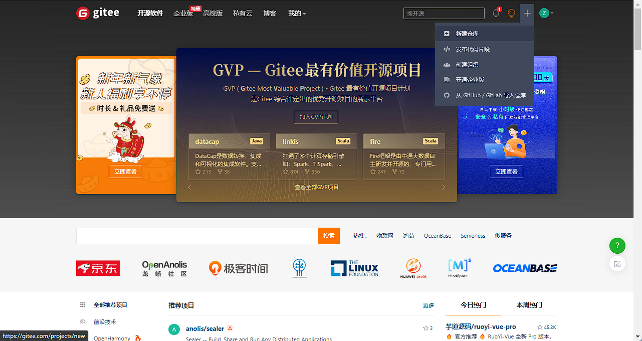 1.官网地址: https://gitee.com