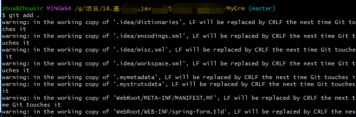 4. 添加文件到暂存区:git add .(注意后面的点表示目录下的所有文件,点前面还有一个空格不要漏掉了)