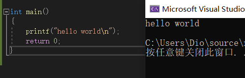 进行我的第一个C语言项目,即使用printf函数打印“hello world”如下:
