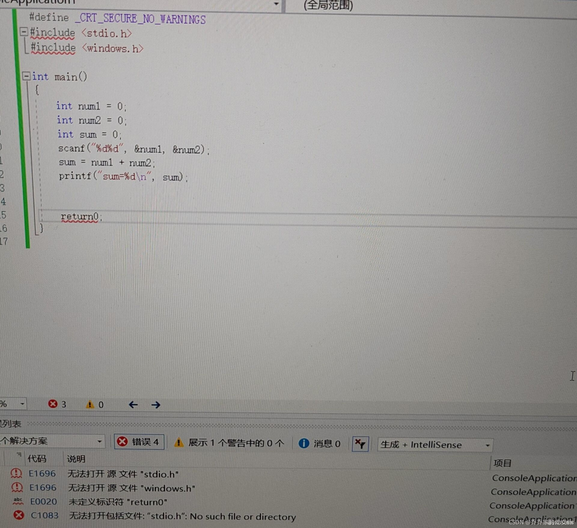 在运行hello world指令时,发现屏幕弹窗过快,这时右键文件名,选择属性页,配置属性,链接器,系统,选择子系统中控制台即可。在开始几次运行失败后就开始怀疑vs运行有问题,报错总是无法找到预处理指令<stdio.h>,这波心态炸裂,属实,如下图:
