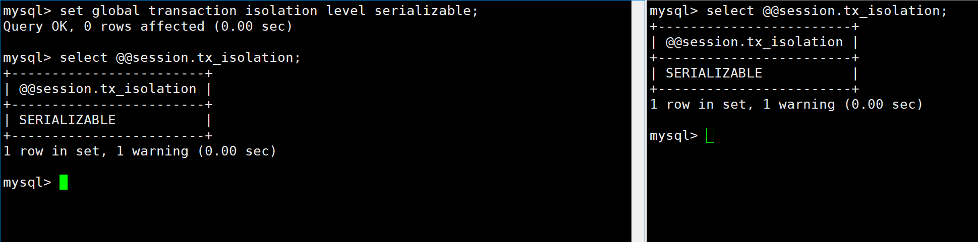 mysql> select @@global.tx_isolation; -- 查看全局隔离级别