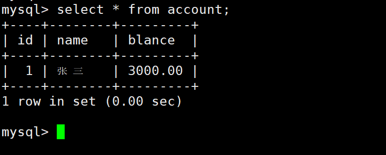 此时终端B可以看到该事务插入的数据,及commit提交事务了,即使客户端崩溃,MySQL数据不会在受影响,因为已经持久化了。