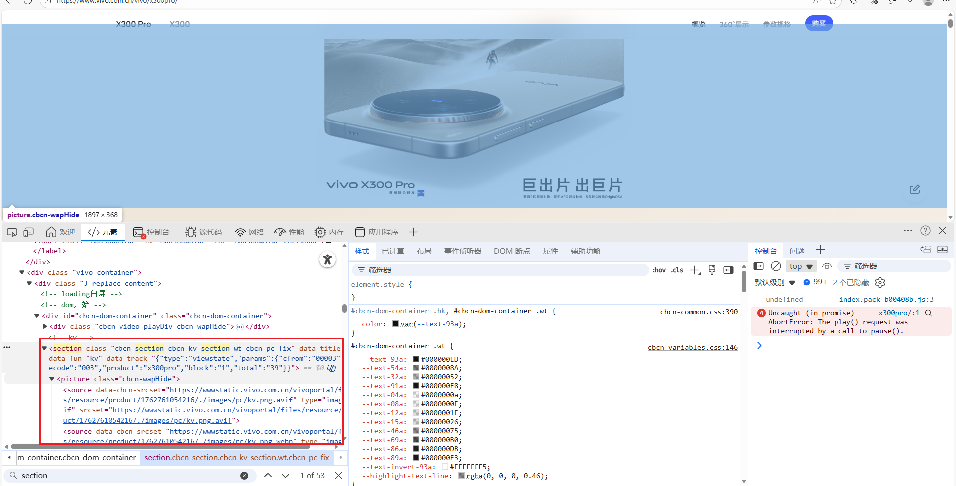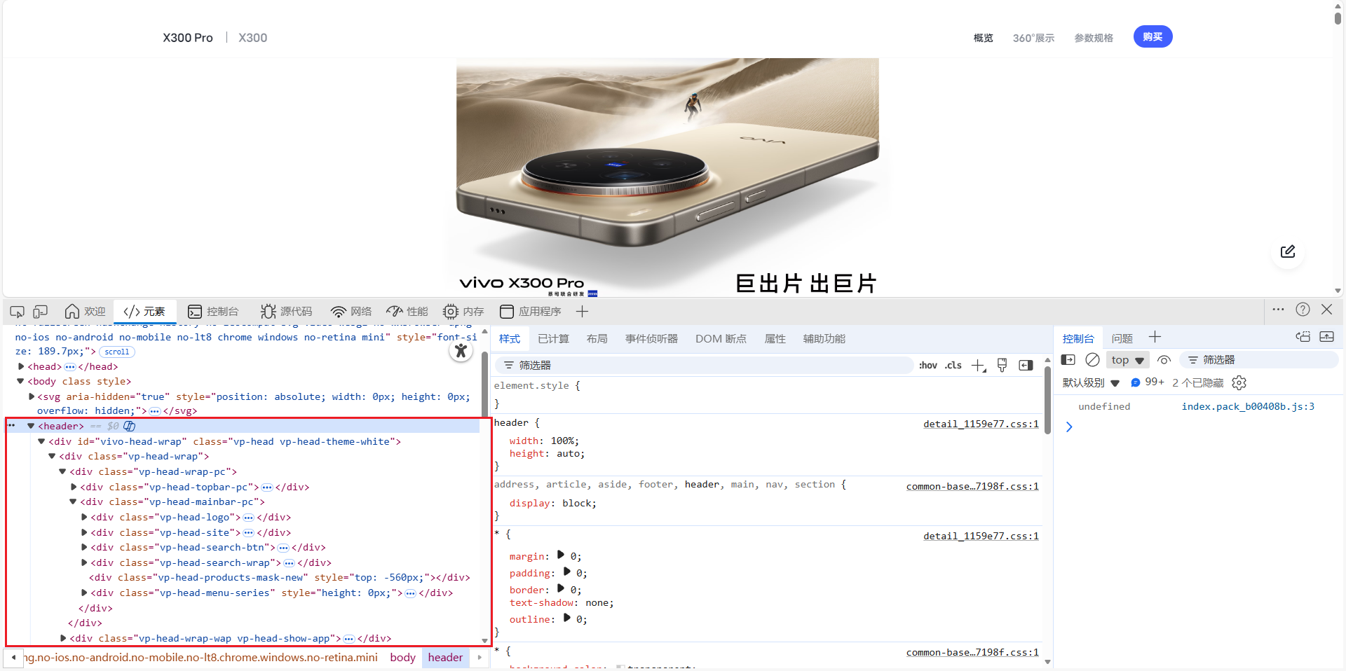 vivo官网用到了最新的H5标签