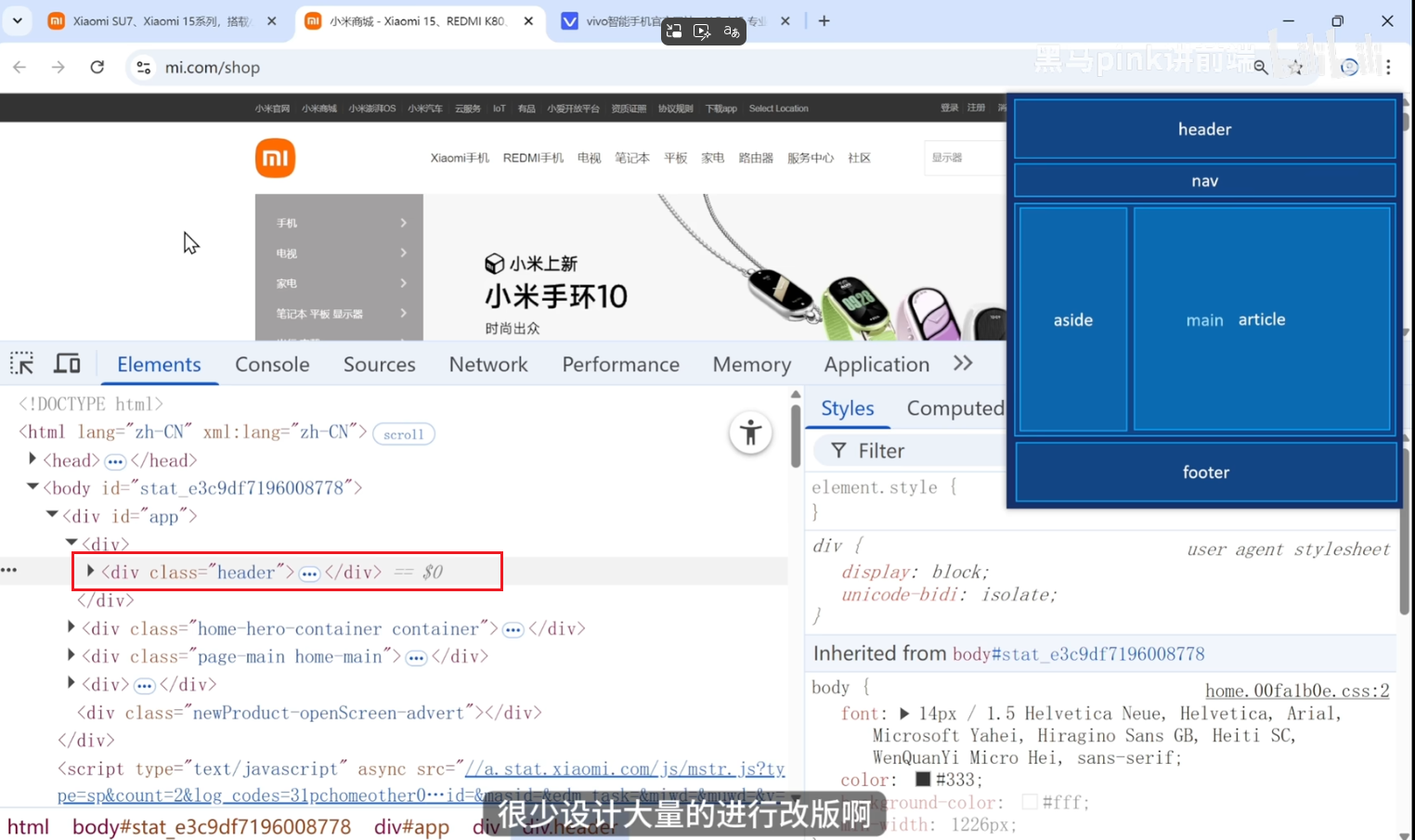 小米的网站并没有使用最新的H5标签