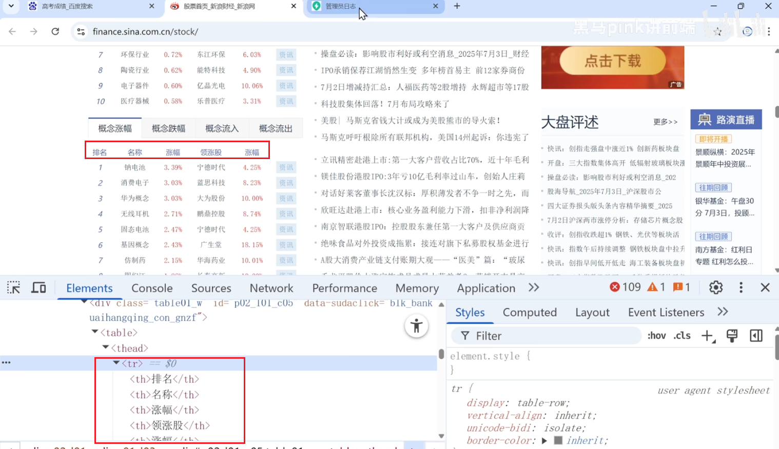 使用th的表头,加粗并且居中展示的,一般再第一行或者第一列展示