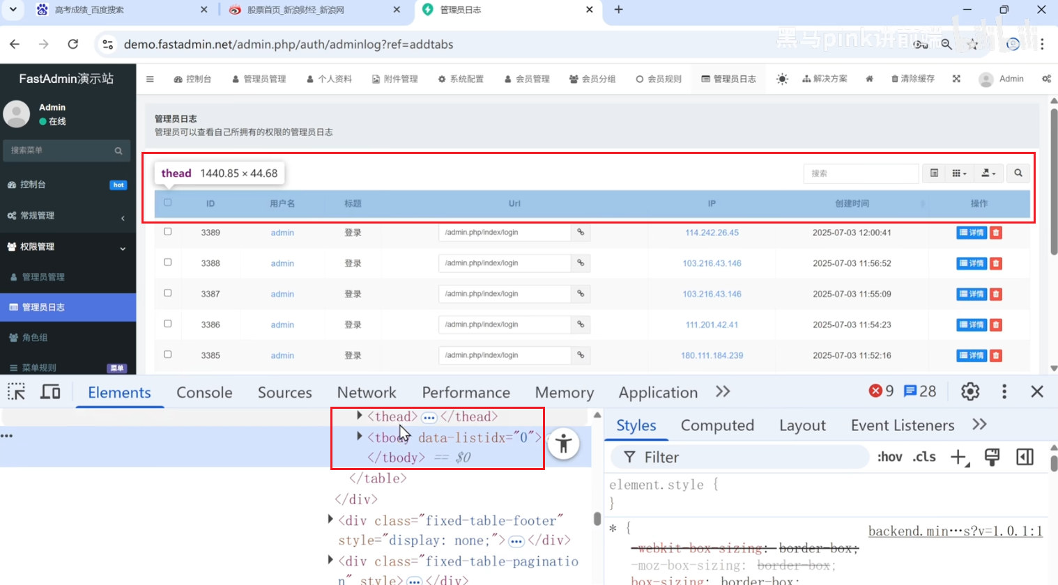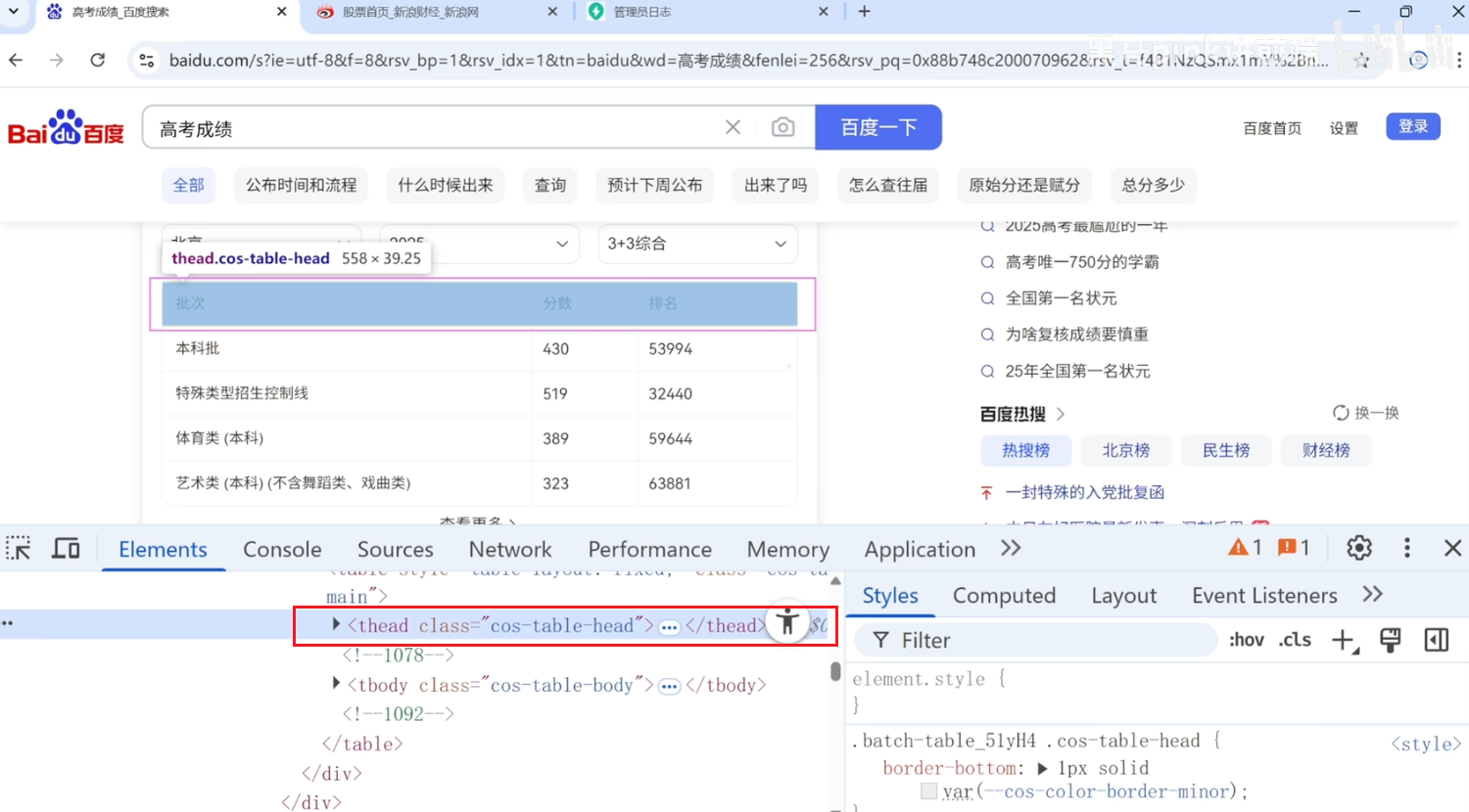 thead和th不一样,th的单元格,thead主要是把第一行的hr包含起来