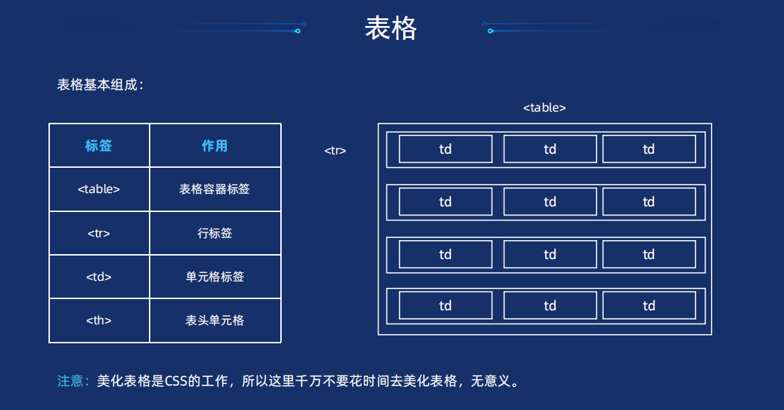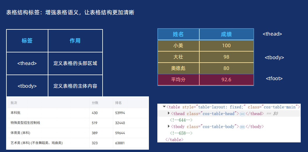 表格的结构标签
