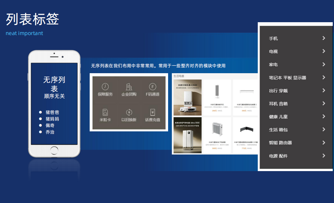 只要是排列很整齐,并且没有顺序的,就可以通过无序列表来实现