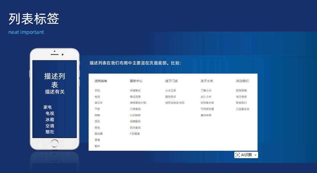 比如线下门店有小米之家等,线下门店的描述就是小米之家等