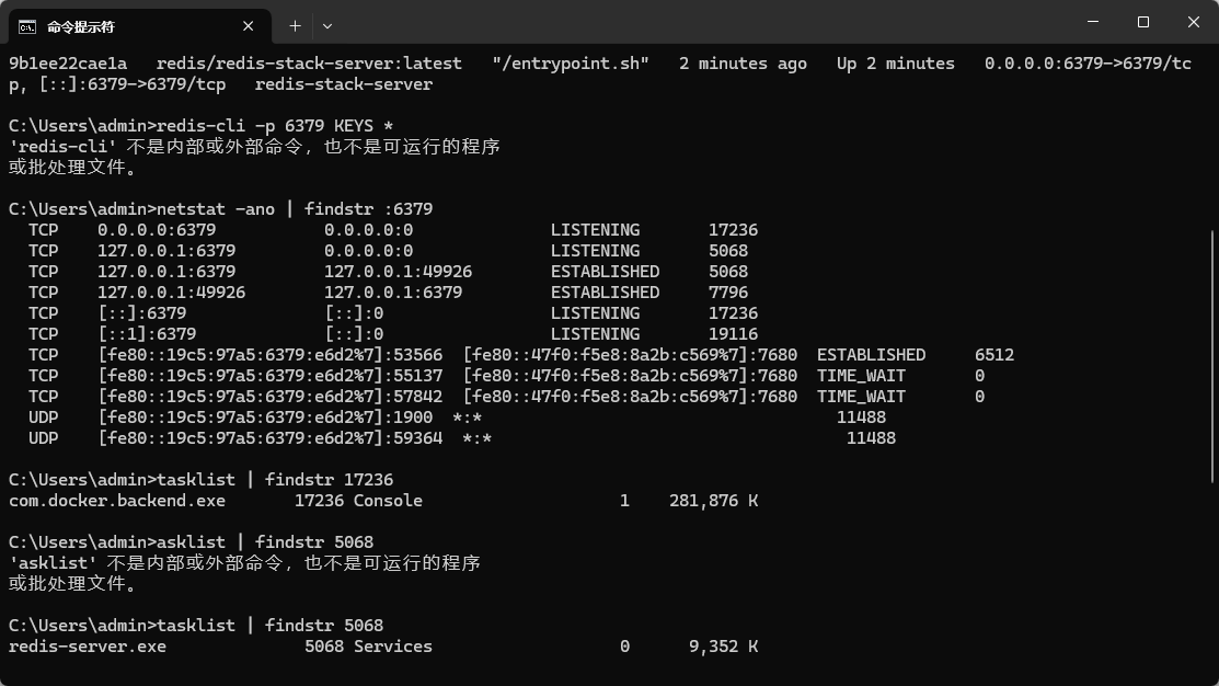 💡 很多用户的问题根源就是:Windows 上装过 Redis,它占用了 6379,Docker 容器虽然运行,但无法绑定端口,导致你实际连的是旧 Redis!
