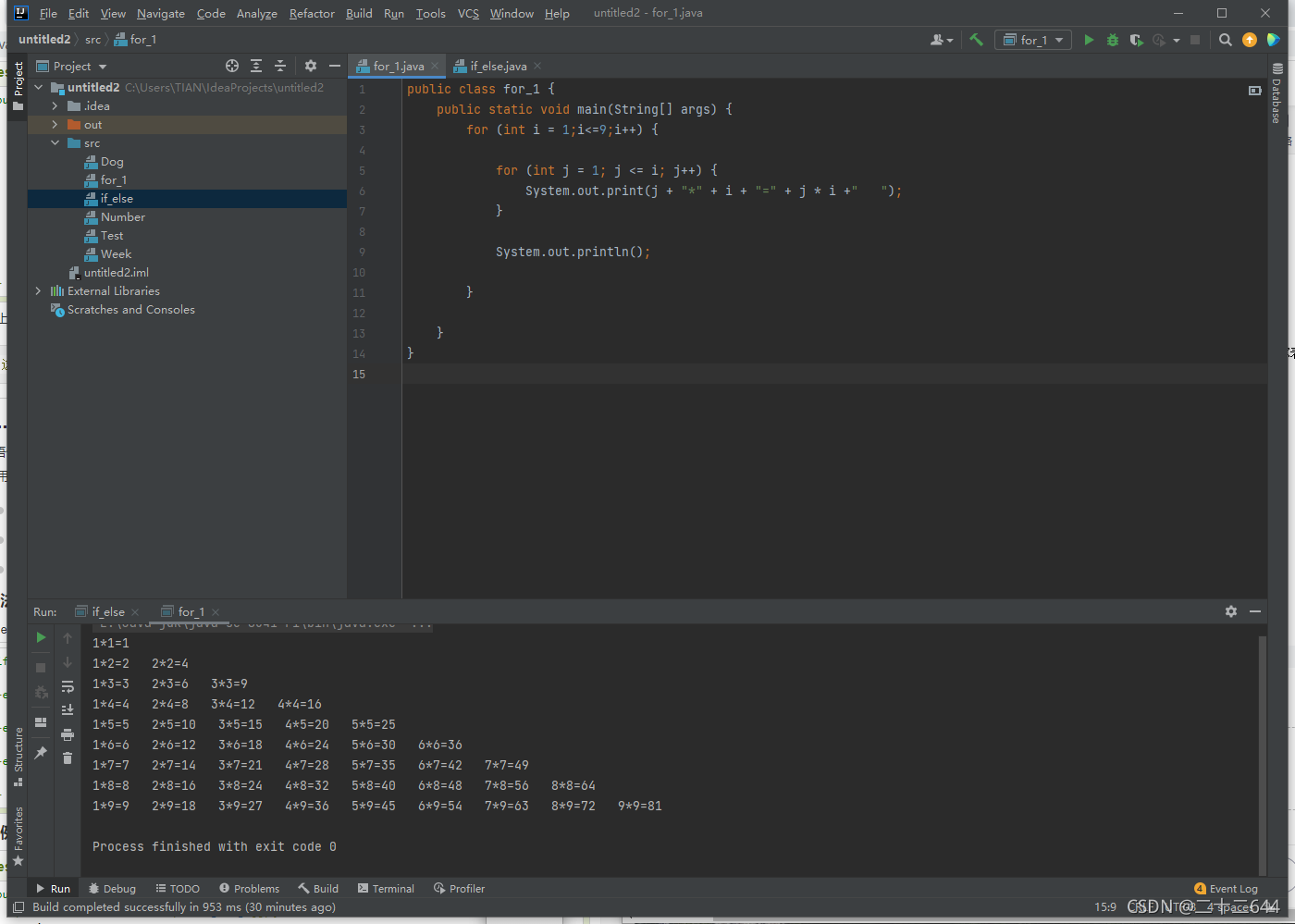 利用for循环写九九乘法表: