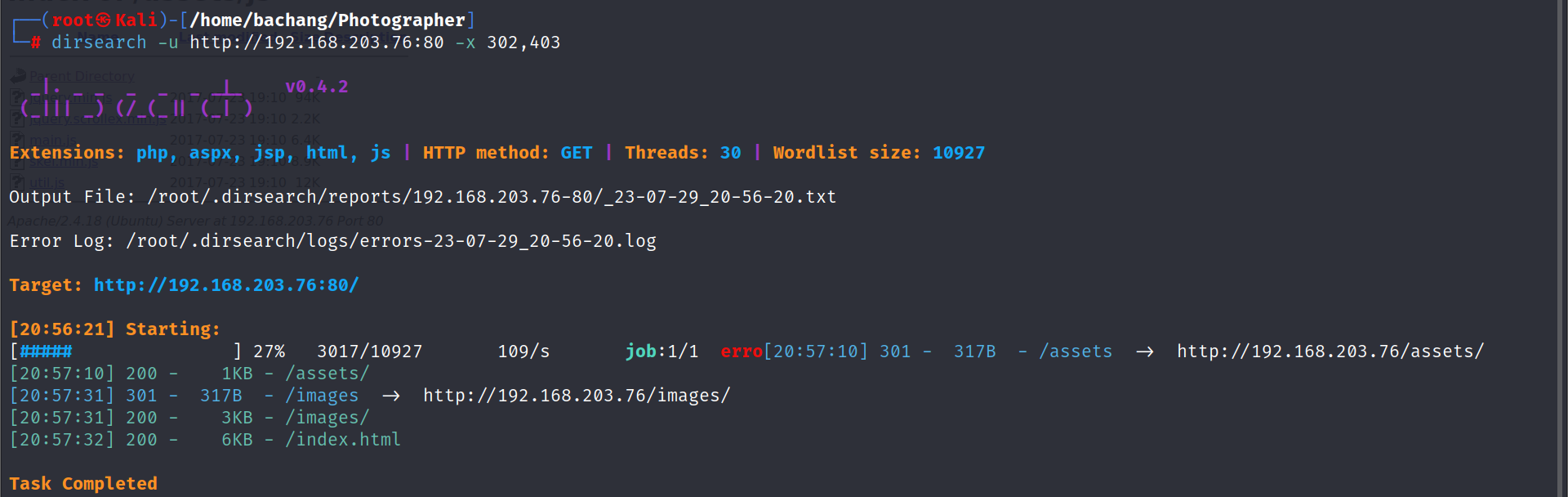 dirsearch -u http://192.168.203.76:80 -x 302,403