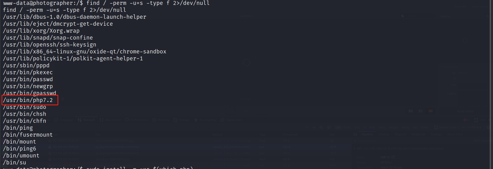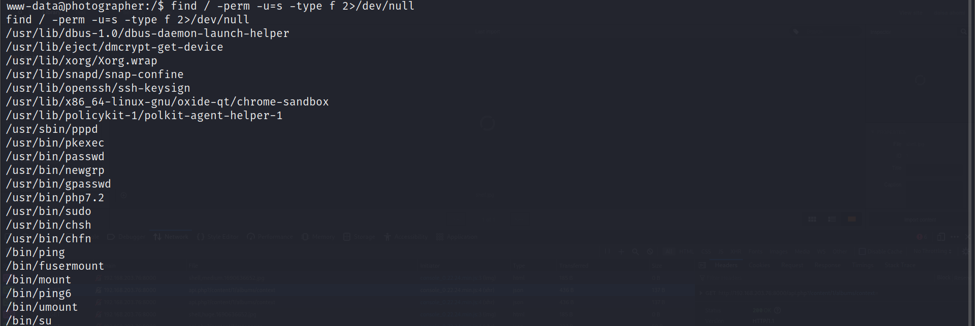 www-data @photographer:/$ find / -perm -u=s -type f 2→/dev/null