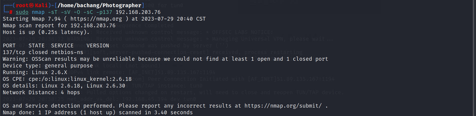 sudo nmap -sT -sV -O -sC -p137 192.168.203.76