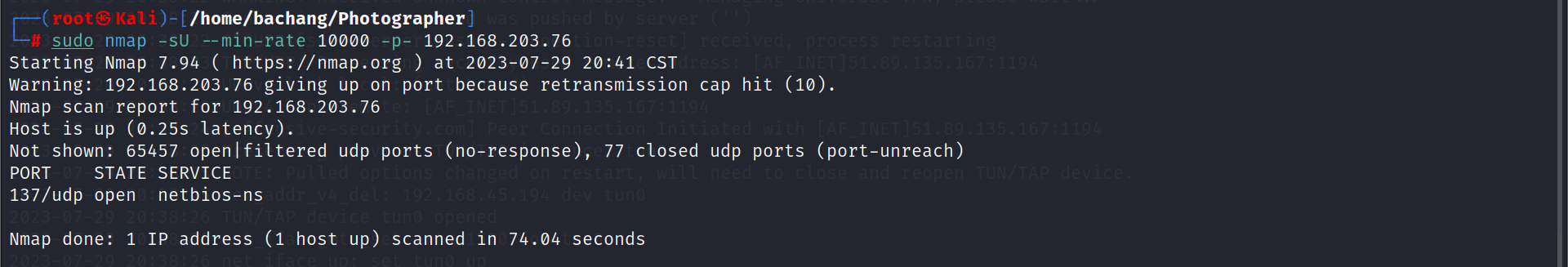 sudo nmap -sU --min-rate 10000 -p- 192.168.203.76
