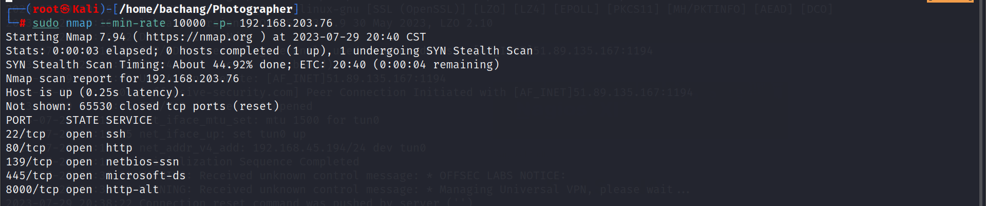 sudo nmap --min-rate 10000 -p- 192.168.203.76