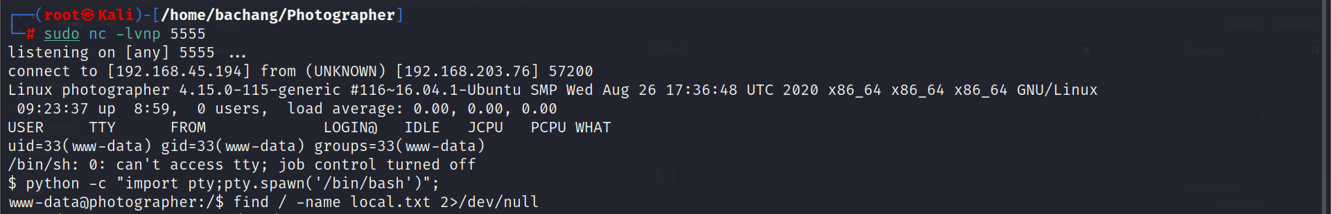 www-data @photographer:/$ find / -name local.txt 2→/dev/null