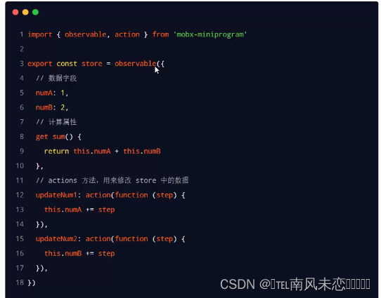 这样得到store对象,对象的前面写get,会使得sum变量时刻获取值,也可以设置set.