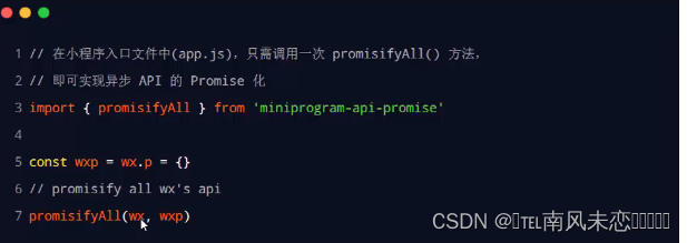 导入包,包给wx,wxp会给导入返回promise对象,会将wx的属性都导入到wx.p内.且没有回调,返回一个promise对象.在app.js上使用,所有页面内wx.p都有.在页面js上,其他页面没有这些.
