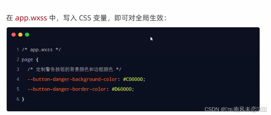 vant组件库的type="danger"内部会添加样式,样式是var(--...)上面的,我们在页面的wxss内使用,则页面使用vant,会寻找这个.但是其他页面使用的话,还是用默认的.因此在app.wxss内使用,全局的wxss会被访问的,比较权重.app.wxss会整理在一起.每个页面都能访问.