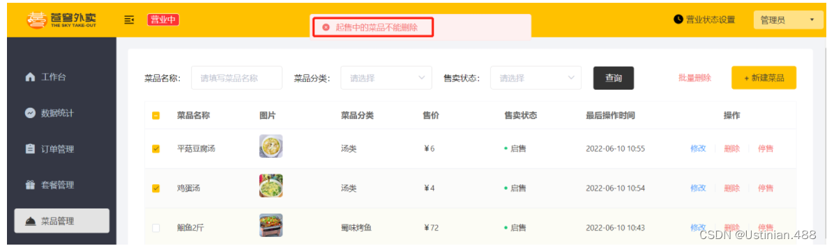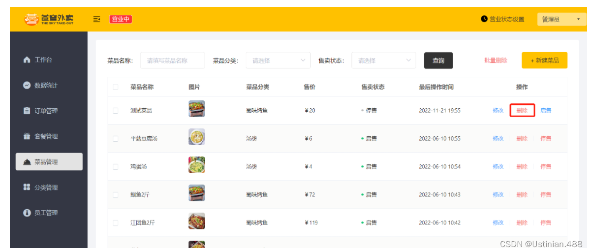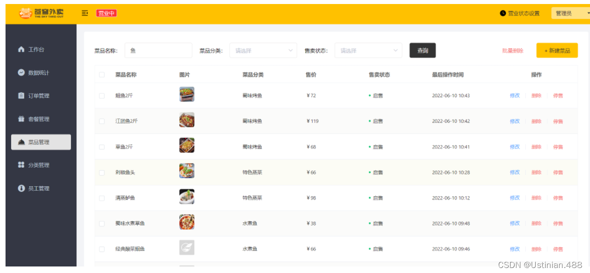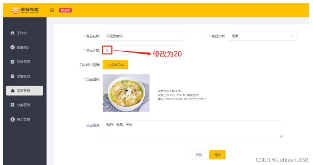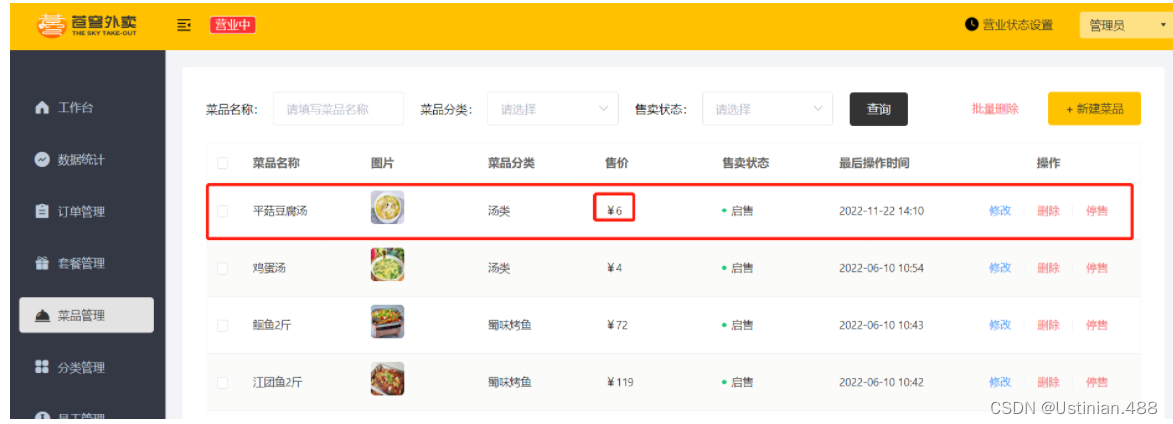 进入菜品列表查询页面,对第一个菜品的价格进行修改