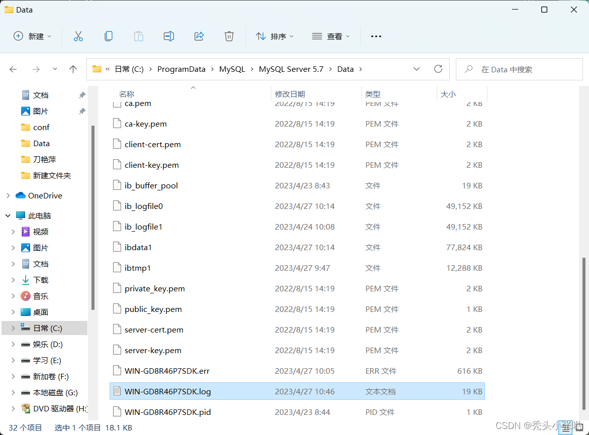 发现操作系统的数据文件还是存在的,需要手动删除该数据文件,再继续下面数据操作步骤