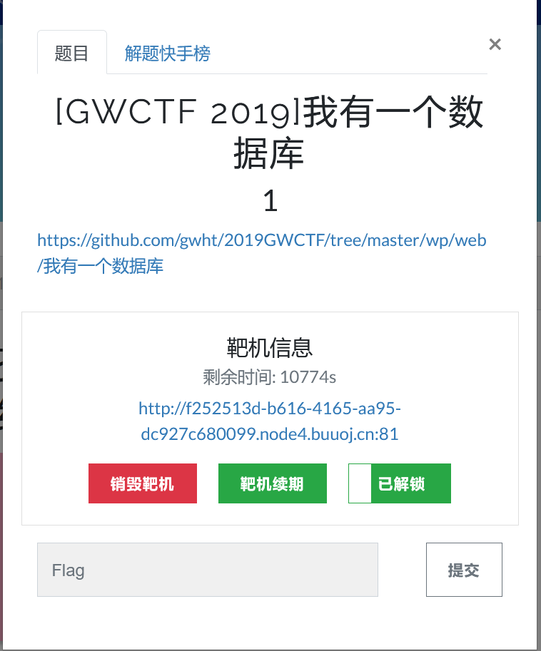 BUU[GWCTF 2019]我有一个数据库 打开链接一堆乱码,查看源代码也没什么信息可提取,利用目录扫描器,看能不能扫出什么东西扫到了一个phpmyadmin进去看看这里的版本号为4.8.1,而phpmyadmin在4.8.0以及4.8.1的版本号中有文件包含漏洞[PHPMYADMIN]CVE-2018-12613我们试试读取看是否成功index.php?target=sql.php?/../../../../../../../../../etc/passwd成功尝试读取flaginde...