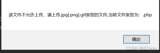 直接尝试上传小马发现弹窗显示不允许上传,应该是前端JS代码对上传文件进行了检测,我们直接禁止使用JS