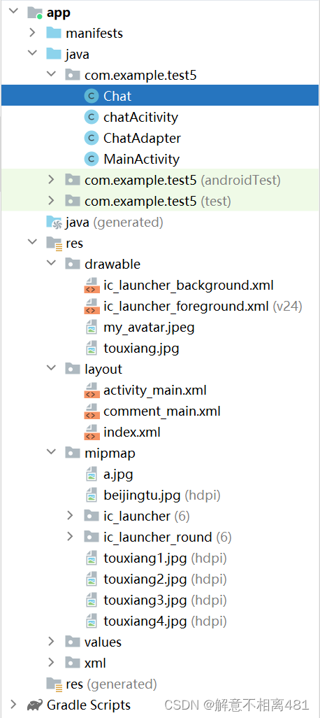 list1.add(new Chat("高启强","告诉老默,我想吃鱼了",R.mipmap.touxiang2,"上午8:00"));