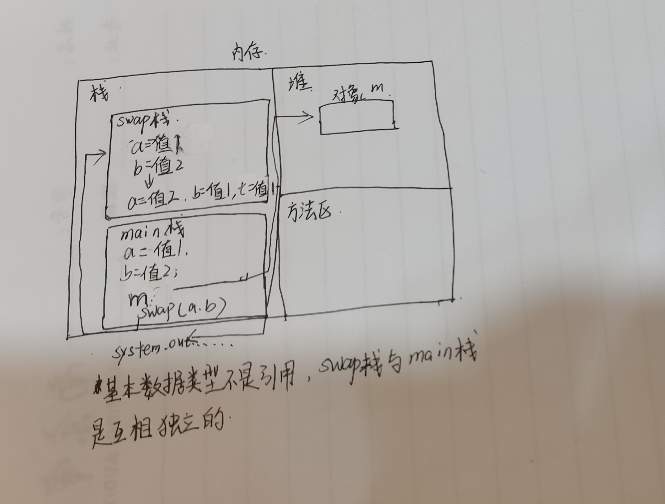 例题输入两个数,调用swap方法后输出,再从含main()方法的类中输出这两个数比较