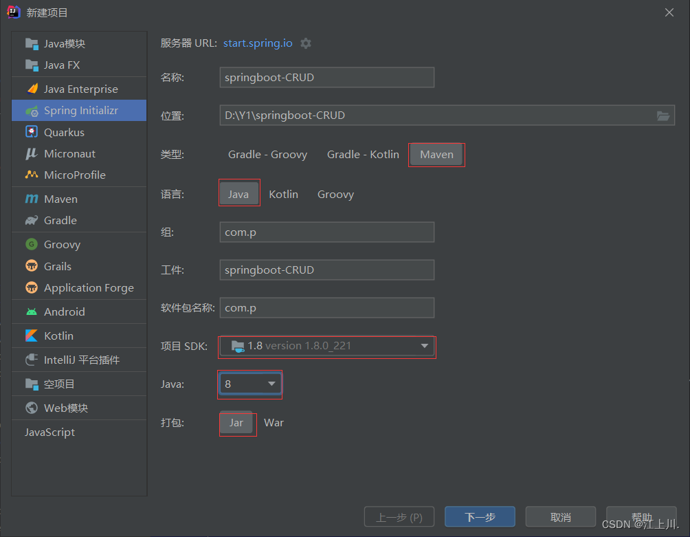 选择Spring Initializr项目 注意:创建springboot项目时需要网络