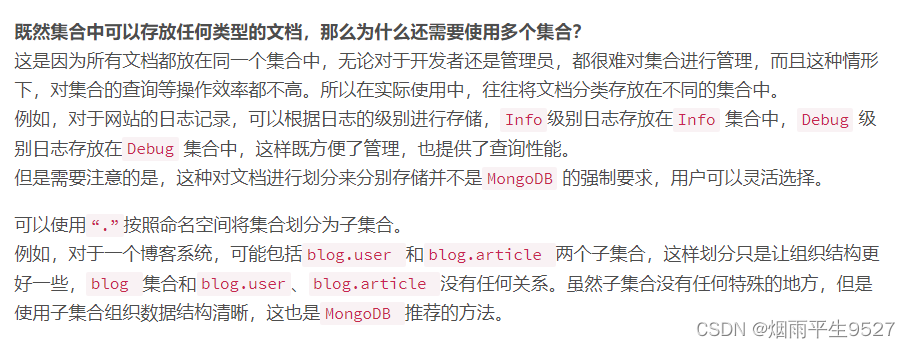 既然集合中可以存放任何类型的文档,那么为什么还需要使用多个集合?