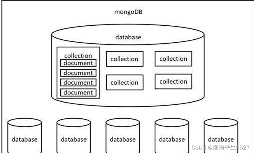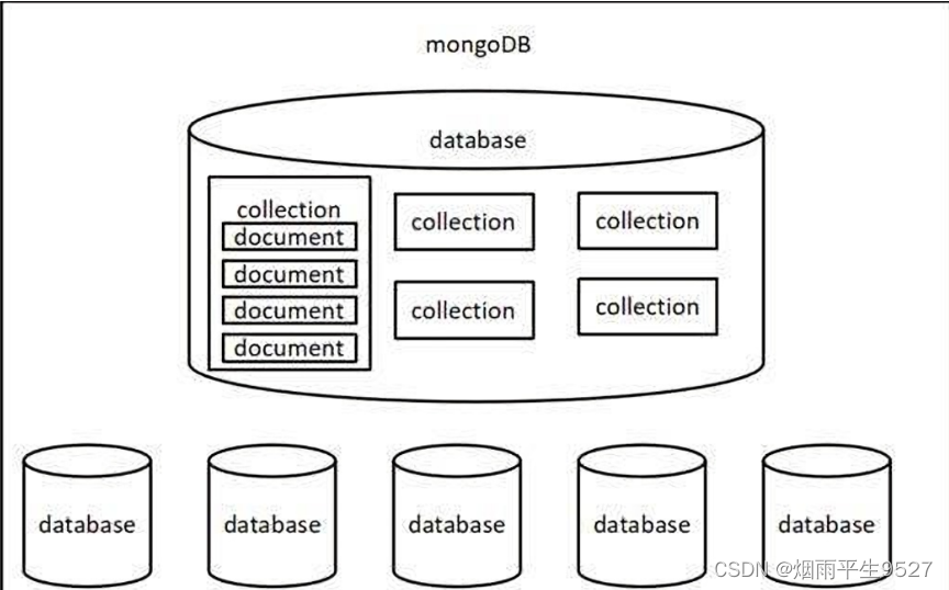 MongoDB实例可以包含一组数据库,一个DataBase可以包含一组Collection(集合),一个集合可以包含一组Document(文档)。一个