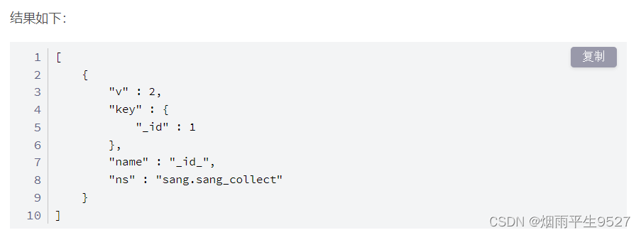 默认情况下,集合中的_id字段就是索引,我们可以通过getIndexes()方法来查看一个集合中的索引: