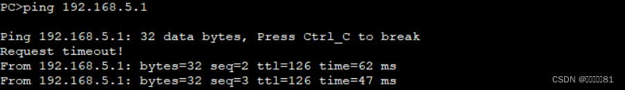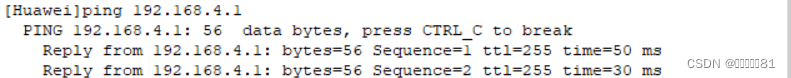 此时对于三层交换机192.168.4.1的地址能ping通,而ping不了5.1主机