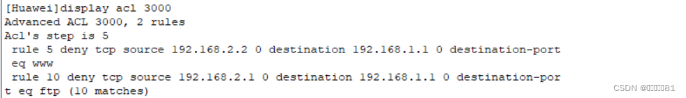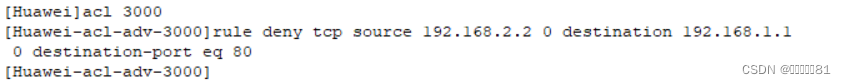 高级ACL列表号3000~3999,根据数据源ip、目标ip、端口号、协议