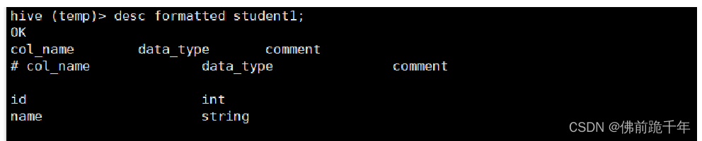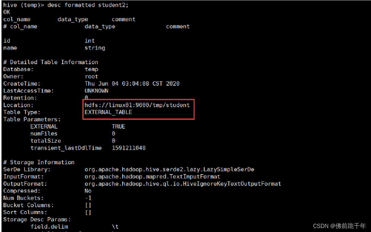 内部表(managed table): 未被external修饰的表,也叫管理表。