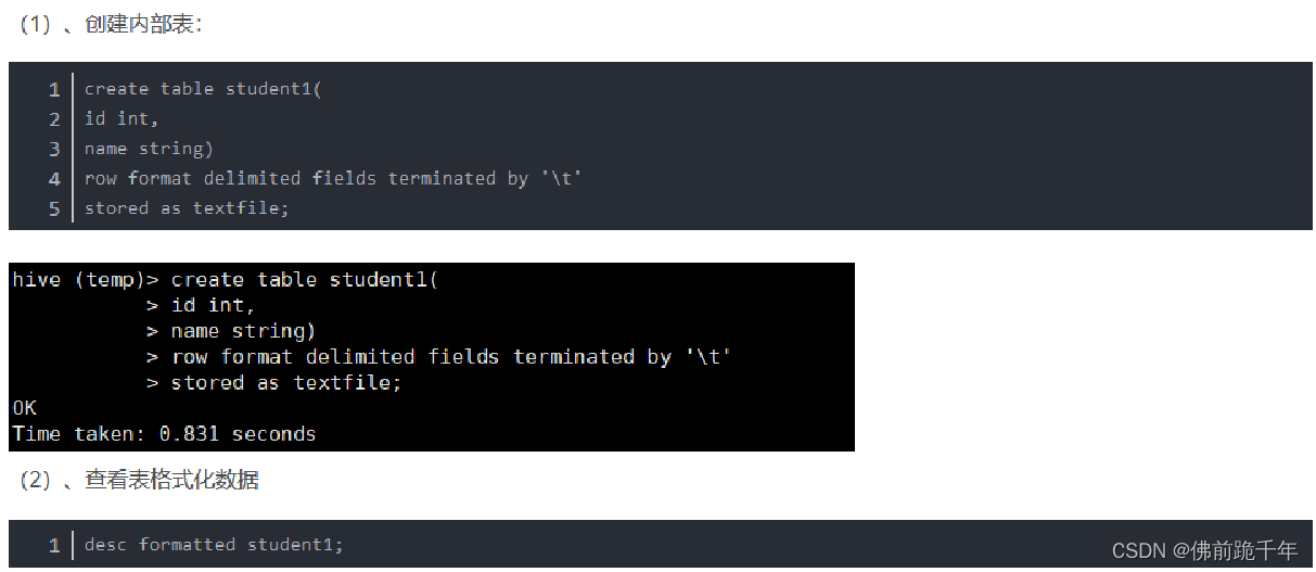 (2)内部表:对原始数据或比较重要的中间数据进行建表存储。