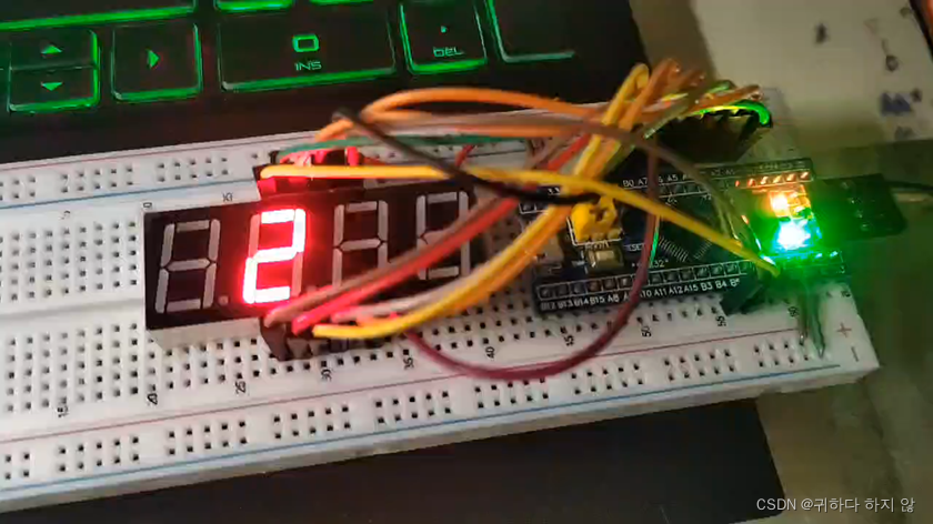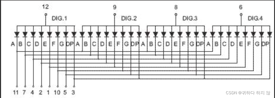 对应着接线就行,上面的“12”“9”“8”“6”是用来控制每个数码管的通断电用的 我用的B0 B1 B2 B3控制的,下面就是按照从左往右的顺序接线就行,从A0开始。接好之后就是..先看看视频哈哈。代码在下面 别急