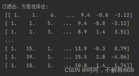 print("\n过滤法:相关系数法:\n", X_best)打印输出选择后的特征矩阵X_best。
