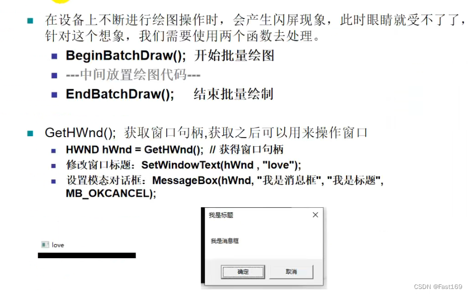//闪屏的原因,因为窗口在绘图,当小球不断移动,会不断地刷新,cleardevice()不断的清除,每一个流程我们都能看见,看见了不连贯就会卡,所以引出,在我们内存中创建一个和窗口一样大的缓冲区,画图的时候先在缓冲区里画图,这个是缓冲区我们看不到的,当缓冲区画完再显示到你能看见的窗口上,让你看见完整的画,会补帧。