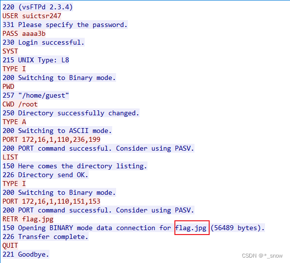8.继续分析capture.pcapng数据包文件,黑客可能找到异常用户后再次对目标服务器的某个服务进行了密码暴力枚举渗透,成功破解出服务的密码后登录到服务器中下载了一张图片,将图片文件中的英文单词作为Flag值提交。